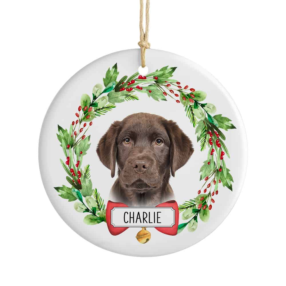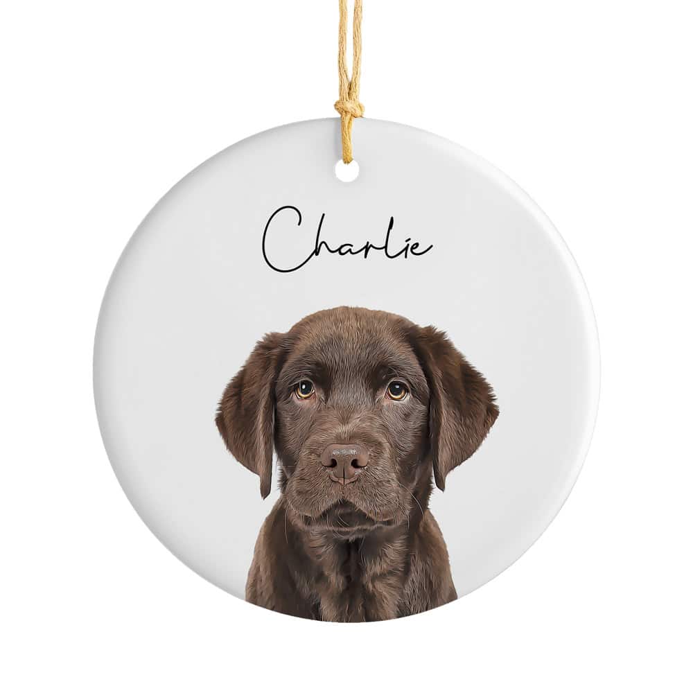 A photo ornament uses your actual picture of your dog, capturing their unique features and personality. This creates a more personal and meaningful keepsake compared to generic pet designs.